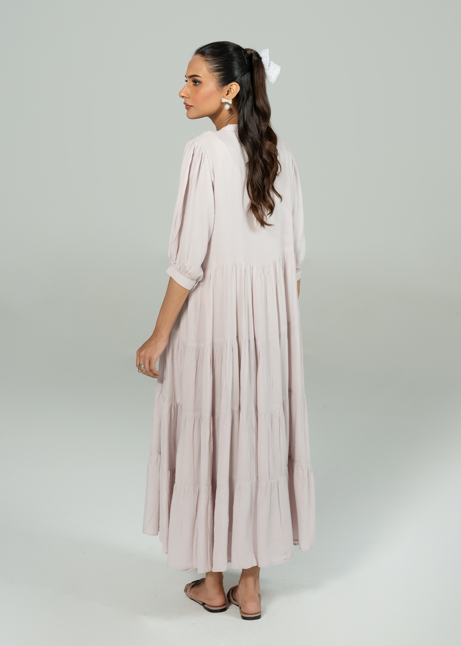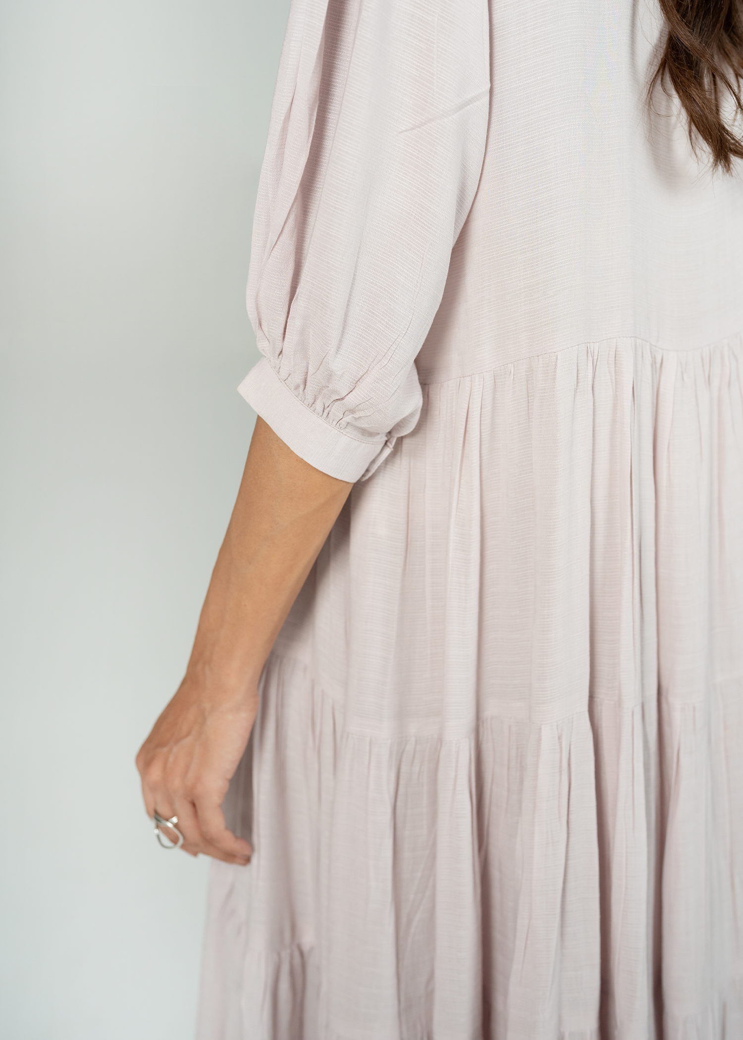 A loose fit summer dress with tiered skirt for a breezy, comfortable summer look.